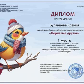Обучающиеся студии «Палитра» стали участниками Всероссийского конкурса рисунков «Пернатые друзья», организованного Высшей школой делового администрирования в честь Синичкиного дня.