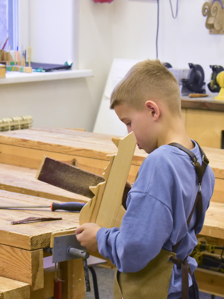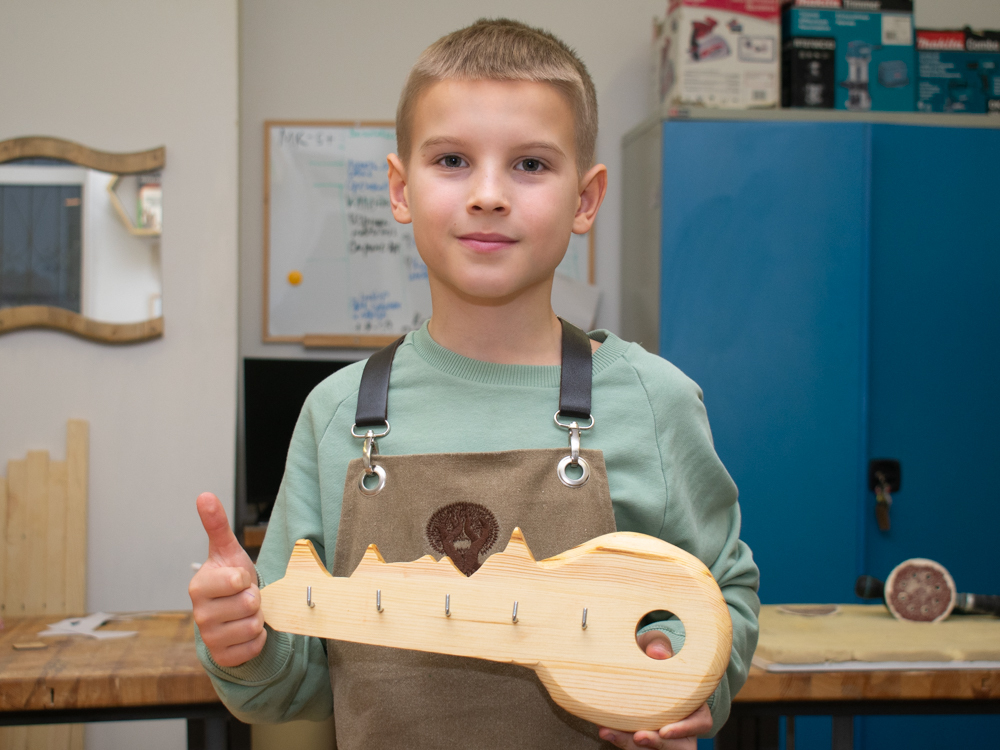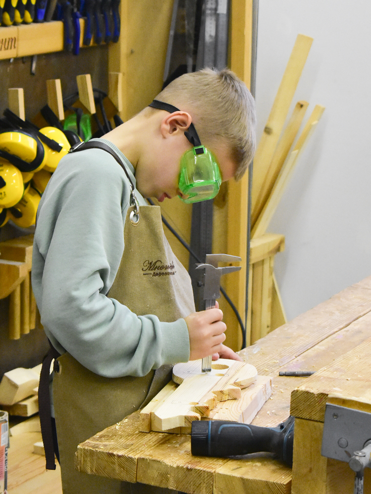 Программа «Мастер-Поделкин» предназначена для детей в возрасте от 7 до 9 лет. Она направлена на развитие творческих способностей, пространственного воображения и мелкой моторики. Занятия проходят под руководством педагога Андрея Петровича Клименкова, который вдохновляет ребят на создание уникальных изделий из дерева.